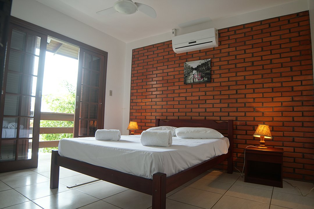 Os apartamentos de dois dormitórios estão preparados para acomodar até cinco pessoas. Possuem um quarto com cama de casal, sendo que o segundo quarto está montado com camas de solteiro que podem ser colocadas juntas formando uma outra cama de casal caso seja solicitado.